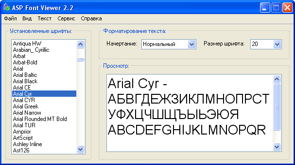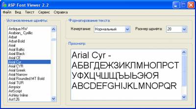 Программа предназначена для просмотра установленных шрифтов.